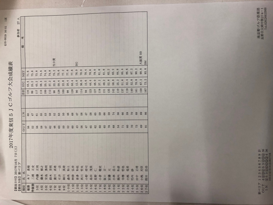 2017年度 東信5JCゴルフコンペ in南長野GC 事業報告