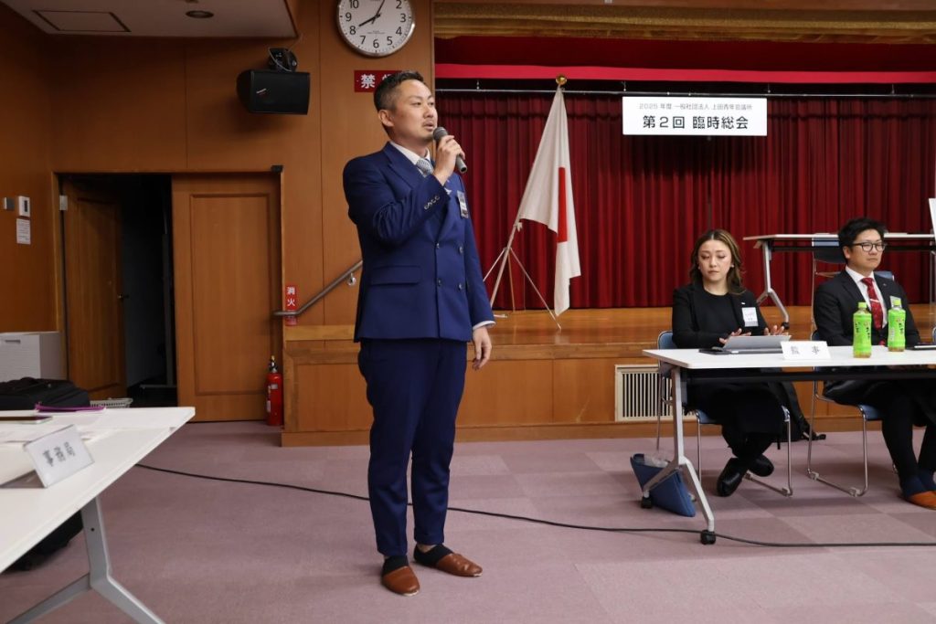 本年度 理事長の井古田 圭 君が青木村出身ということで、今回の第2回臨時総会は青木村で開催することとなりました。第2回臨時総会では2025年度修正予算(案)承認の件について承認いただきました。これにより各委員会の年間予算も決まり、各委員会の方針に沿った形で志向を凝らした事業が一層具体化していくことと思います。