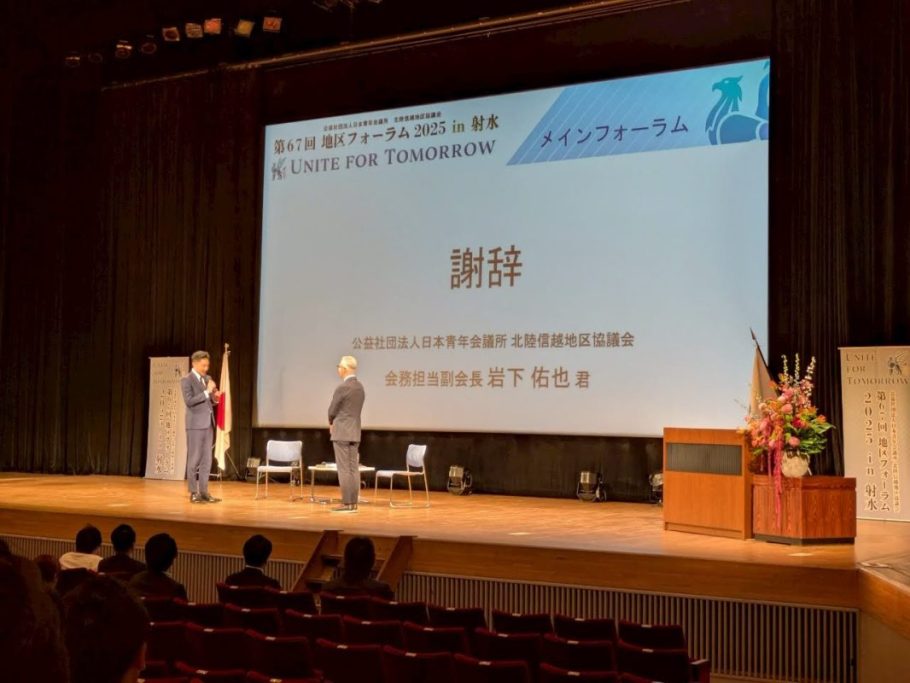 2025年6月28日(土)に、富山県射水市にて第67回地区フォーラム2025 in 射水が開催されました。今年度は岩下佑也副会長をはじめ、竹花勇貴さん、松島雄一さん、渡邉明日香さんが上田青年会議所より地区フォーラム運営委員会へ出向され活躍されました。上田青年会議所からも多くのメンバーが参加しました。